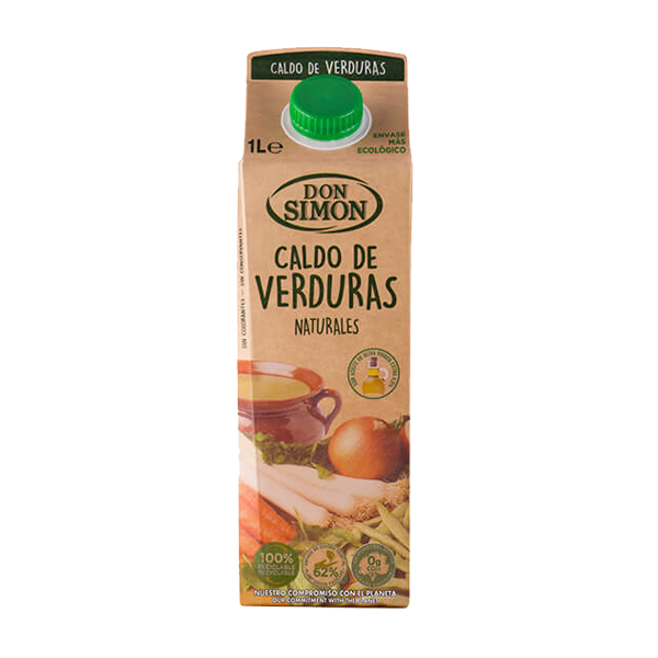 Caldo Don Simón 100% natural. De verduras. Hecho con productos naturales sin colorantes ni conservantes. Nuestra exclusiva receta le otorga un sabor único y garantiza el éxito en la mesa. Envase ecológico de 1 litro.