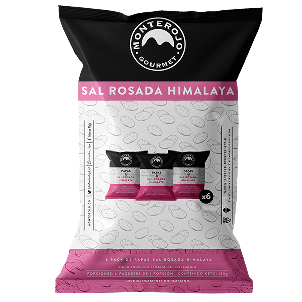 Sumérgete en una experiencia de sabor única con nuestros Chips Crocantes de Papas gruesas y rústicas con un sorprendente sabor a Sal Rosada del Himalaya.